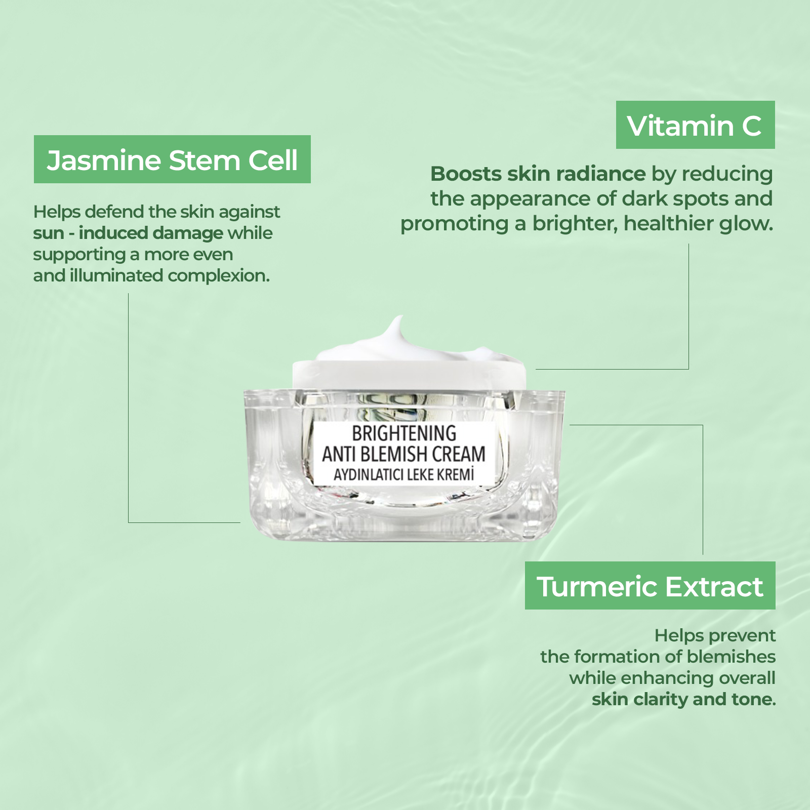 Bebak Pharma Brightening Anti Blemish Cream – Daily Face Moisturizer with SPF 15, Jasmine Stem Cells, Vitamin C & Turmeric – Targets Dark Spots, Evens Skin Tone, For All Skin Types (50ml / 1.69 fl oz)