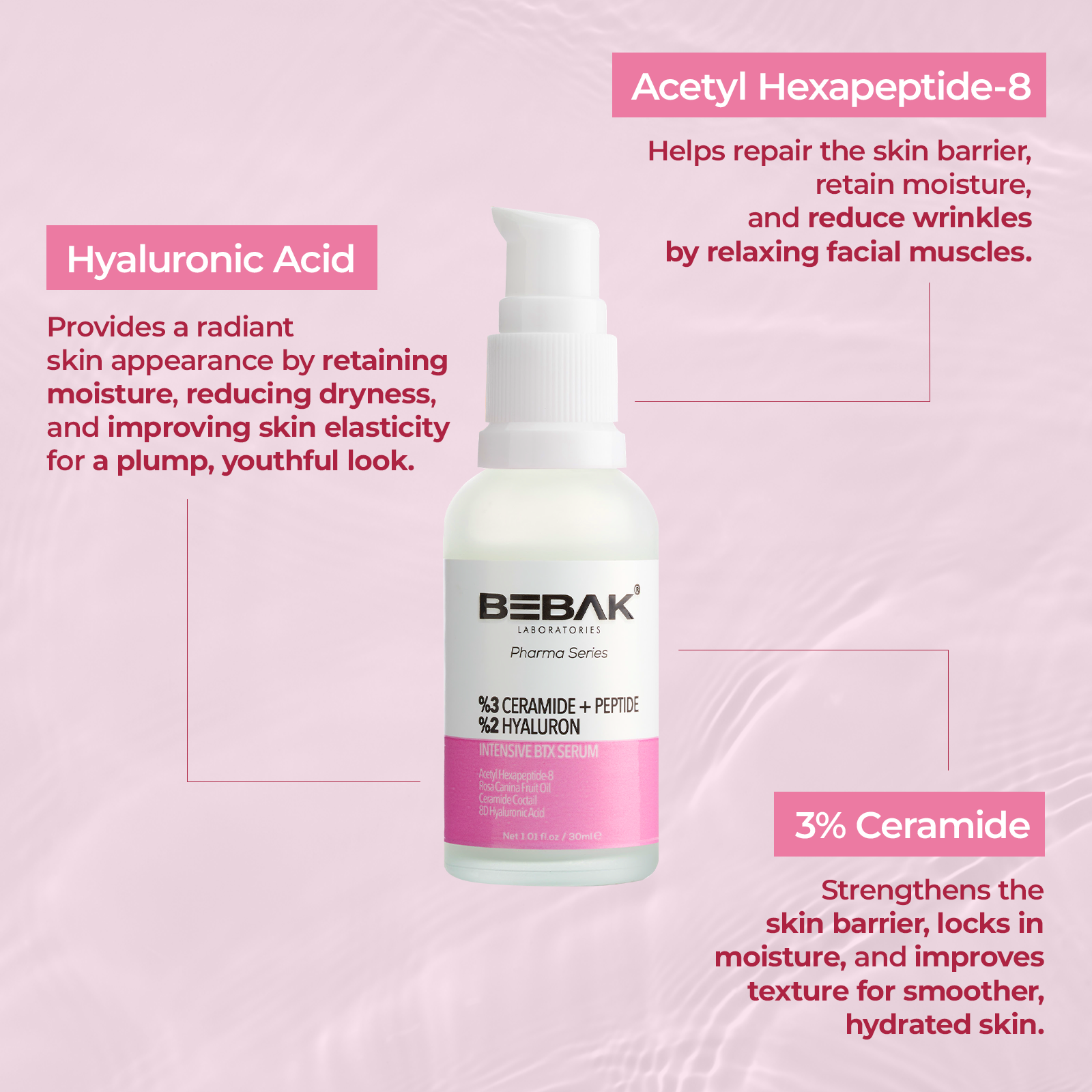 Bebak Pharma Intensive Anti-Aging Serum – Wrinkle-Fighting Face Serum with Peptides, 3 Ceramides, 8 Types of Hyaluronic Acid, Trehalose & Prebiotics for Firm, Youthful Skin (30ml / 1.01 fl oz)
