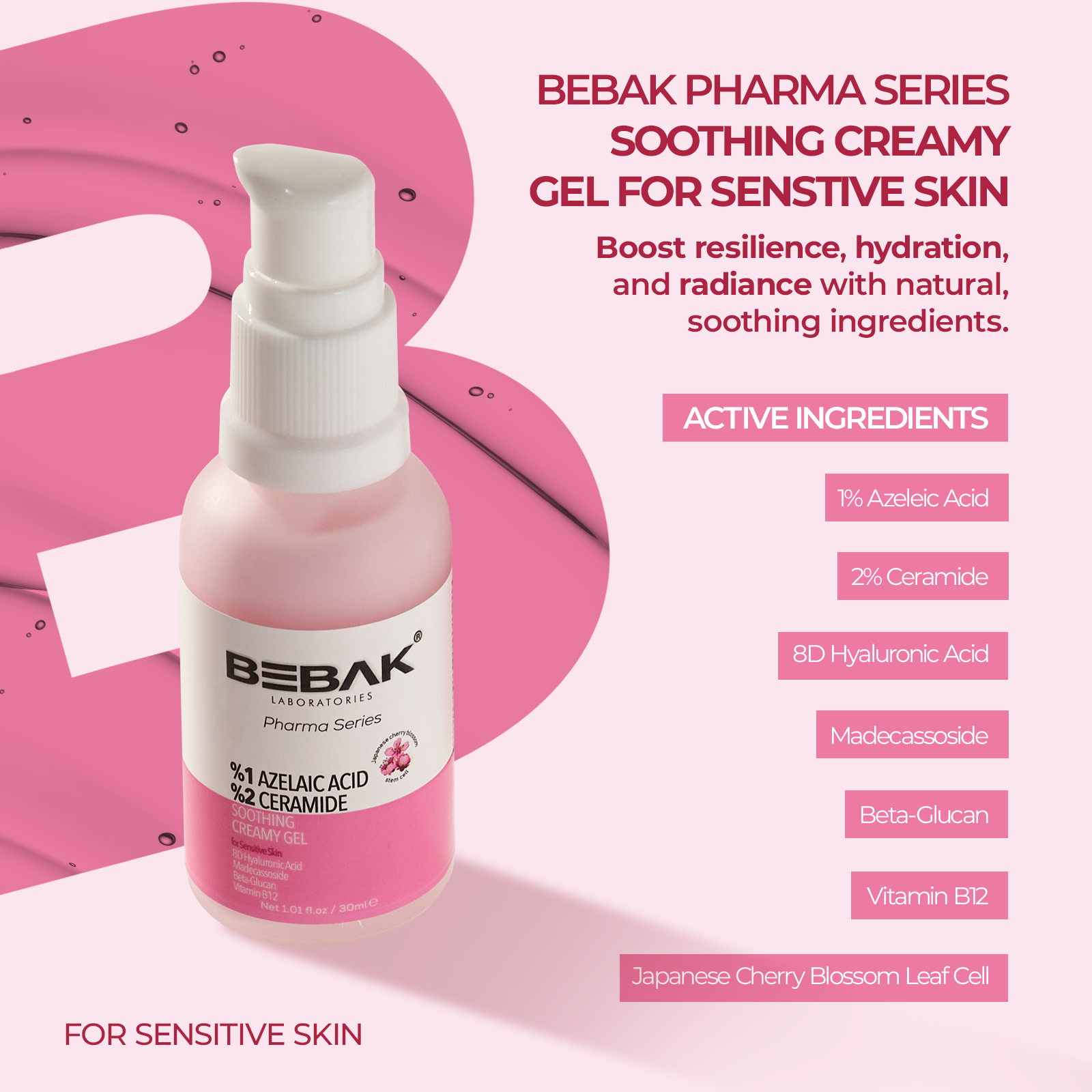Bebak Pharma Soothing Creamy Gel – Hydrating Gel for Sensitive Skin with Azelaic Acid, Vitamins & 8 Types of Hyaluronic Acid, Brightening & Barrier-Repair Care (30ml / 1.01 fl oz)