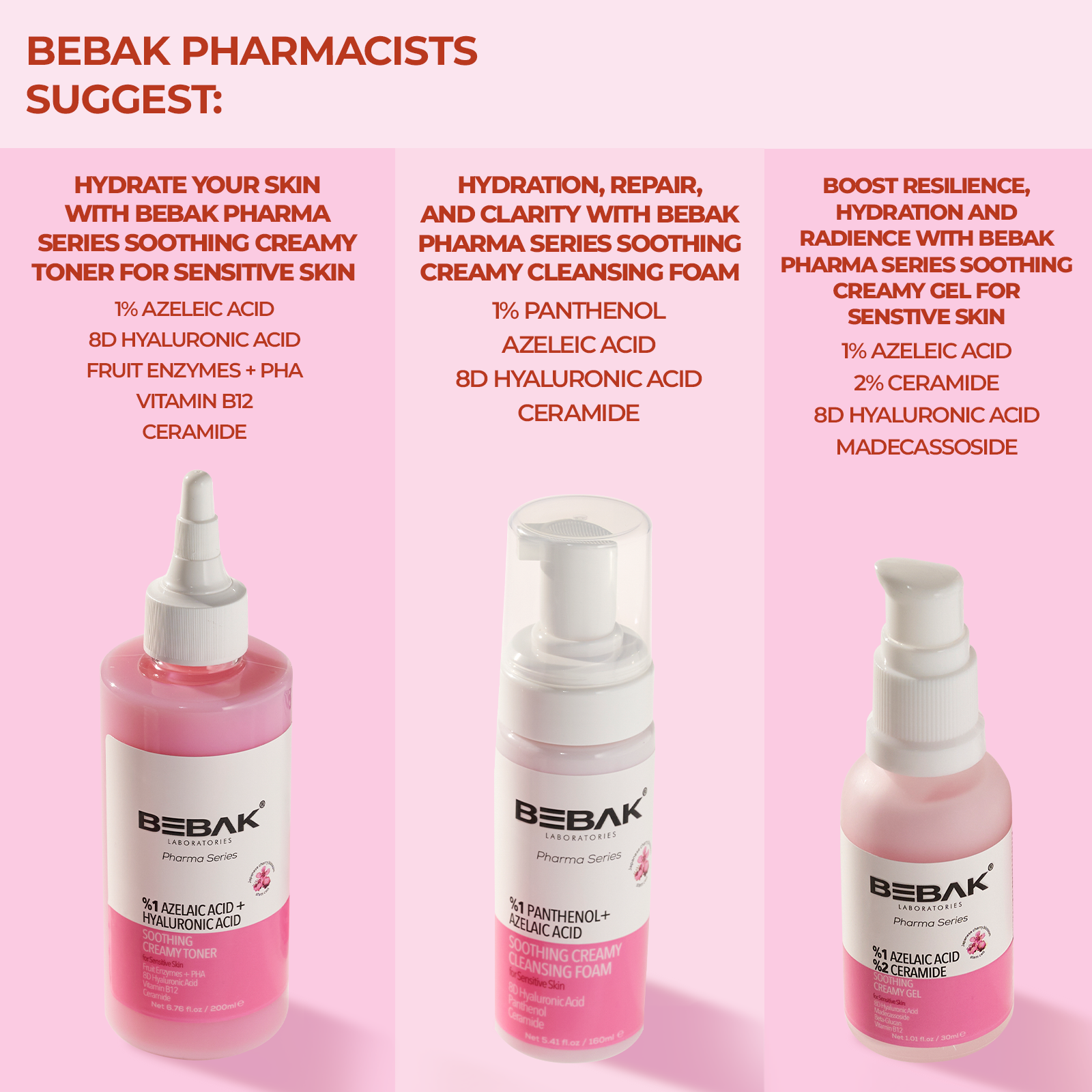 Bebak Pharma Soothing Creamy Toner – Hydrating Toner for Sensitive Skin with Azelaic Acid, 8 Types of Hyaluronic Acid, Vitamins & Proteins, Barrier-Repair & Tone-Balancing Formula (200ml / 6.76 fl oz)