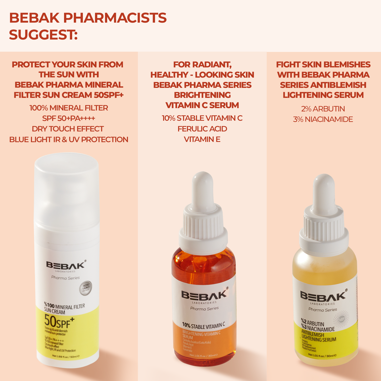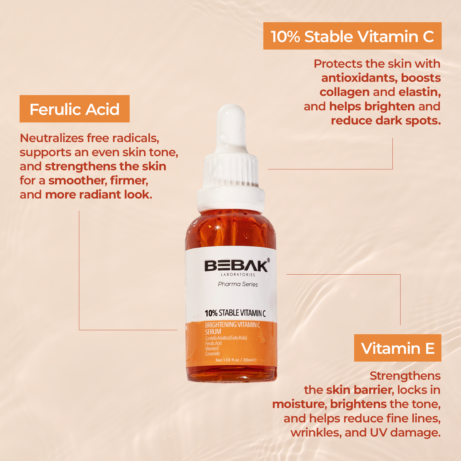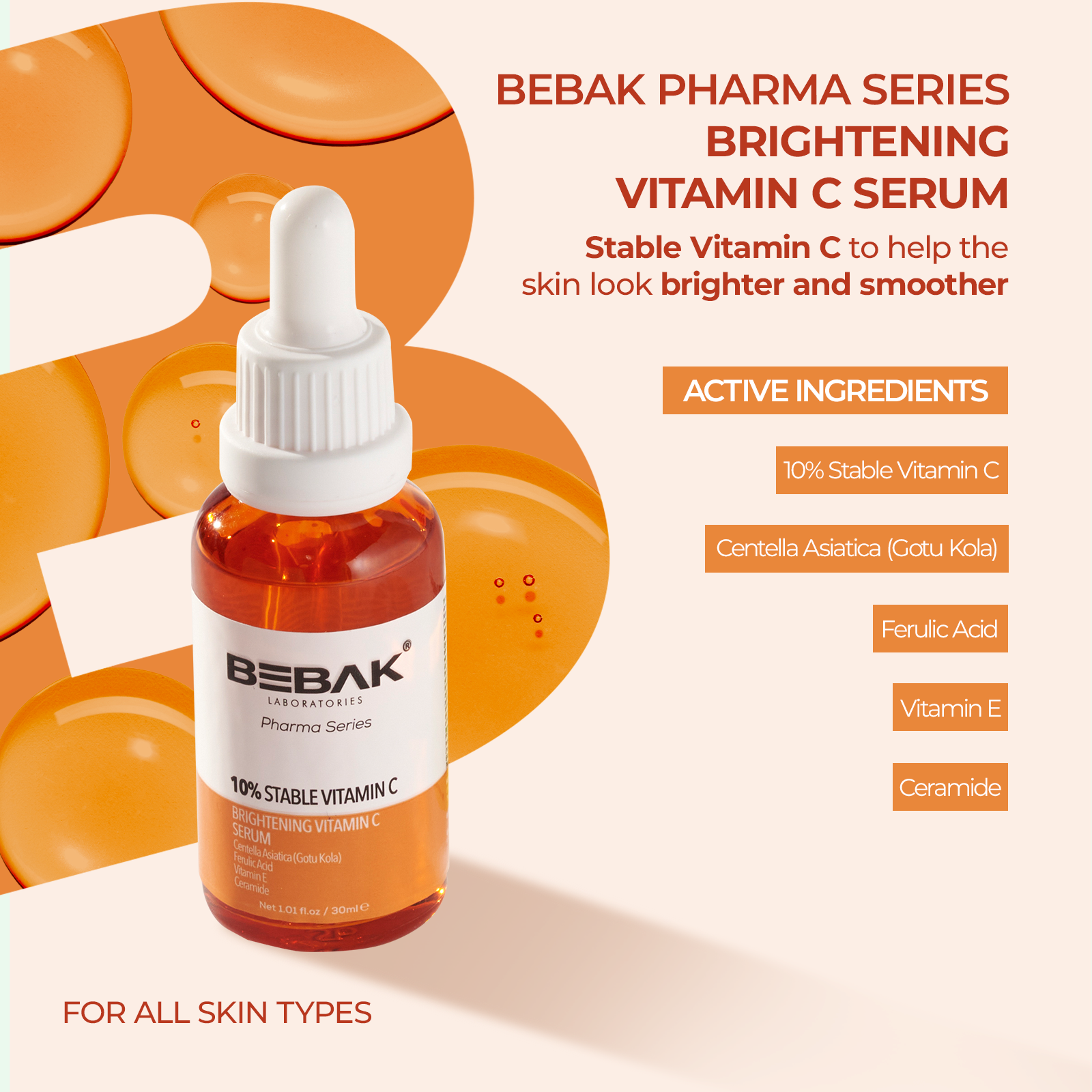 Bebak Pharma Vitamin C Serum – Brightening Face Serum with Vitamin C, Vitamin E, Ferulic Acid, Ceramide & Gotu Kola for Radiant Skin & Even Tone, Day & Night Use (30ml / 1.01 fl oz)